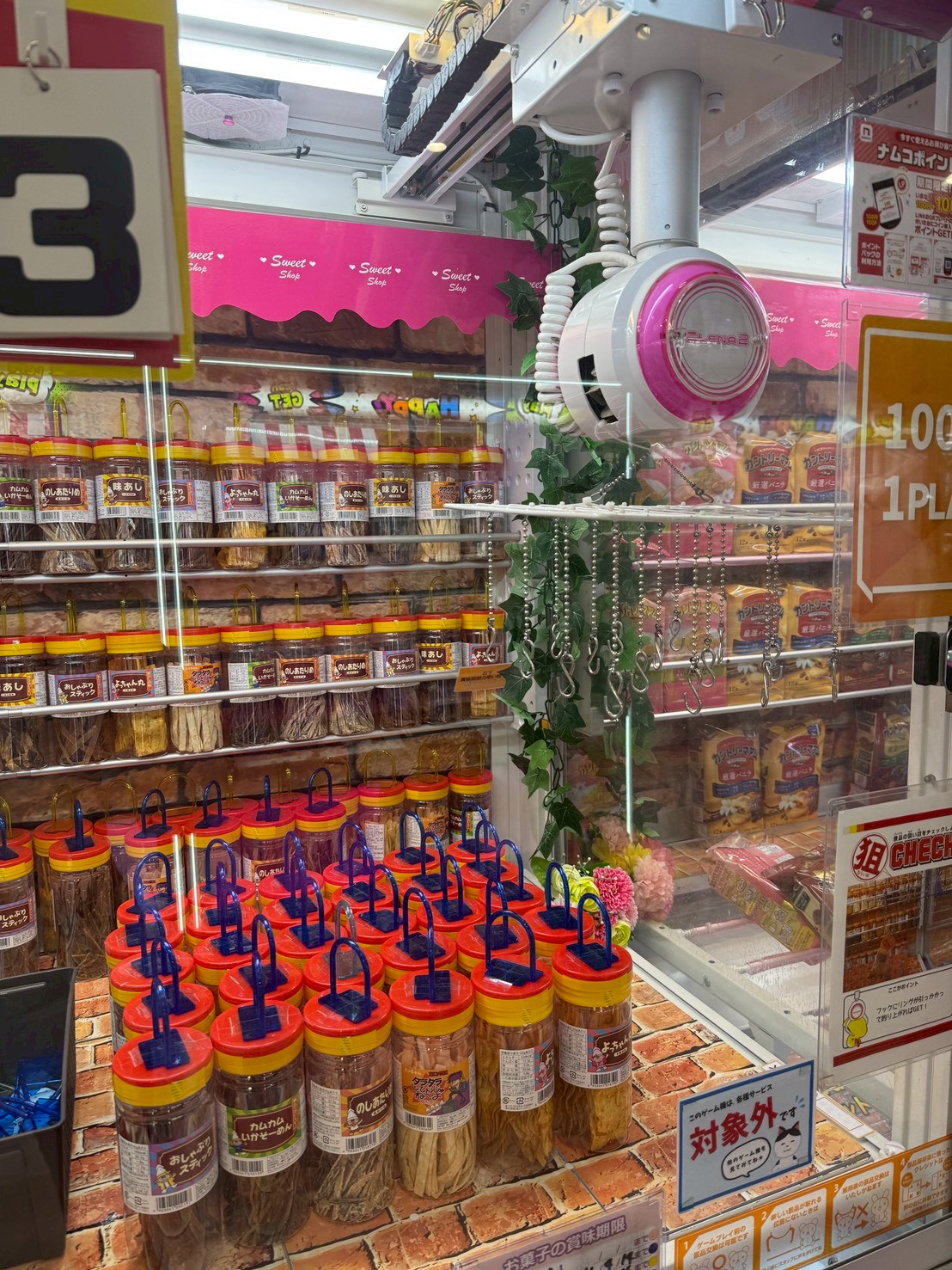 失敗の話もしておく。別の日に、あと少しで取れそうな台に追加投入して1500円使ったが、結局取れなかった。よく見たら三本爪の台で、確率機寄りの設定だったと後から気づいた。2本爪の筐体が基本的に実力機で、3本爪の筐体が確率機に分類されることが多い——この確認を省いたのが敗因だった。「あと少し」という感覚は、確率機では当てにならない。